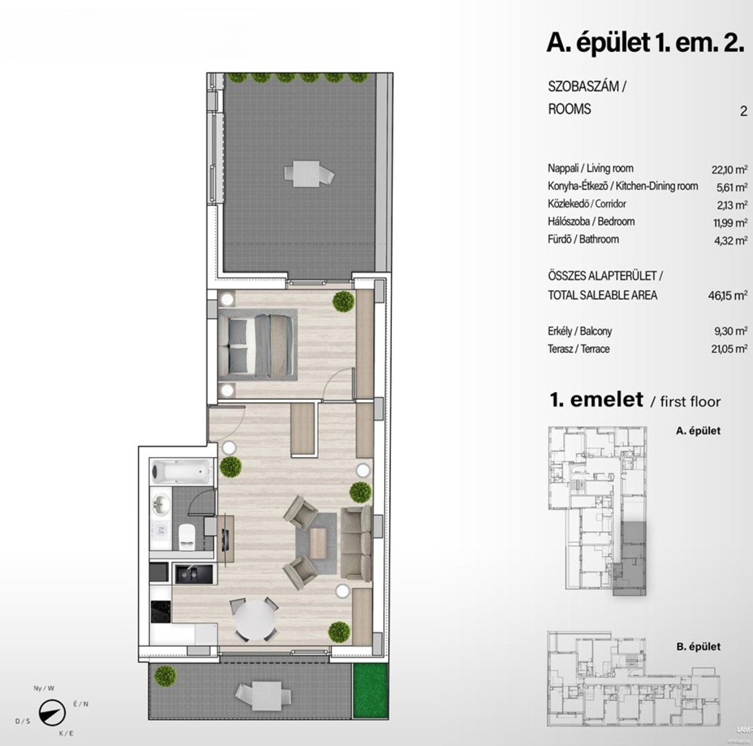 34–132 m² közötti lakások, garzontól a 4 szobásig