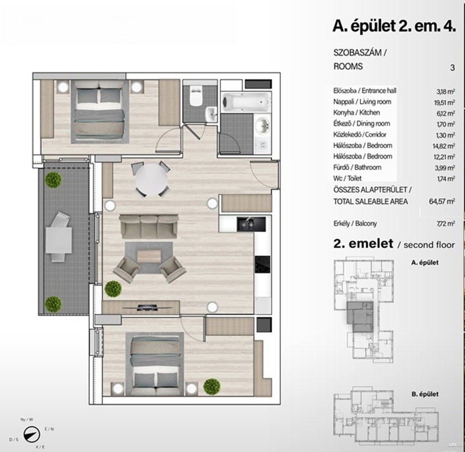 34–132 m² közötti lakások, garzontól a 4 szobásig