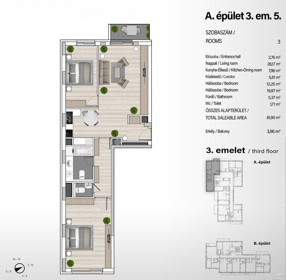 34–132 m² közötti lakások, garzontól a 4 szobásig