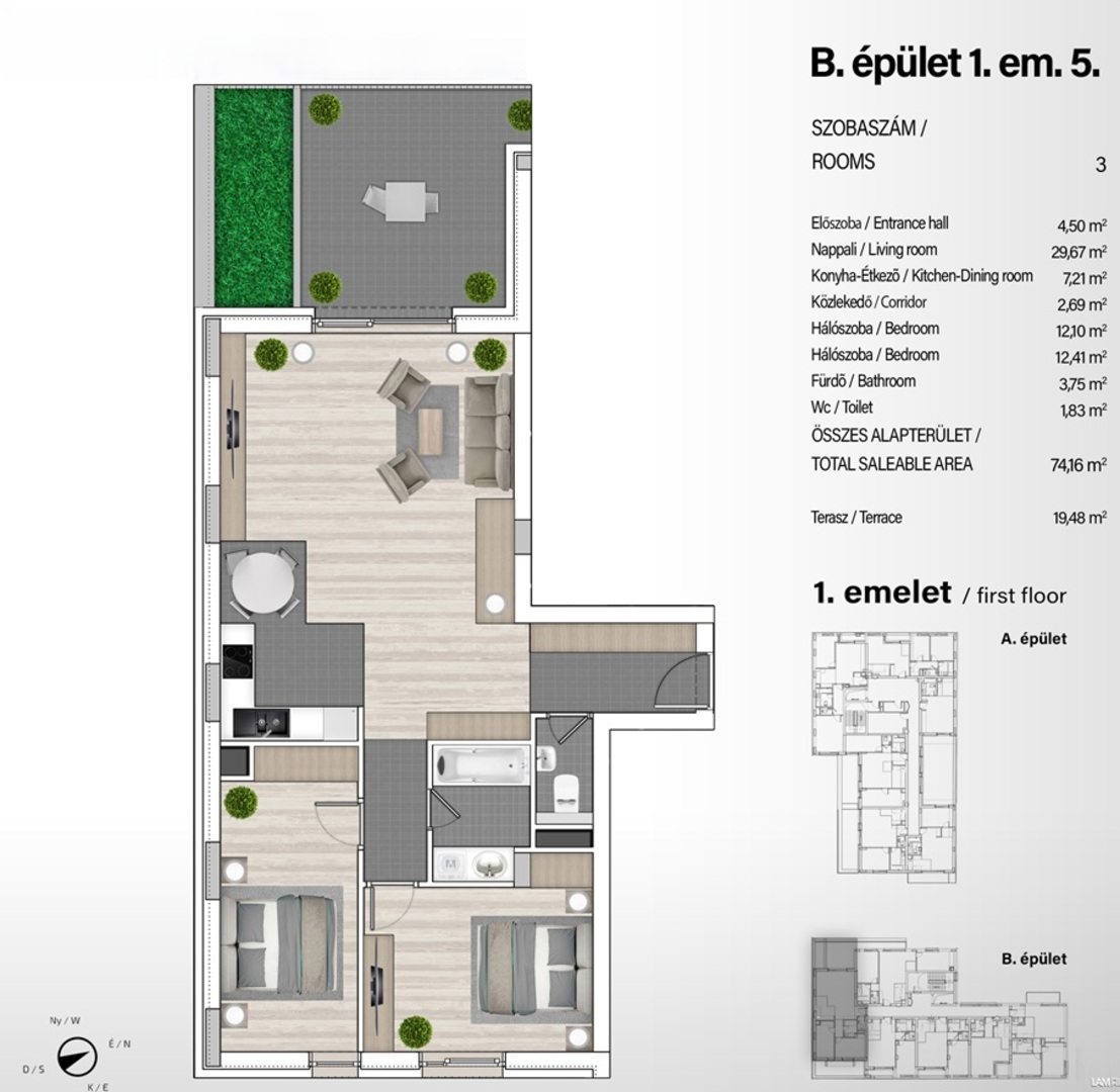 34–132 m² közötti lakások, garzontól a 4 szobásig