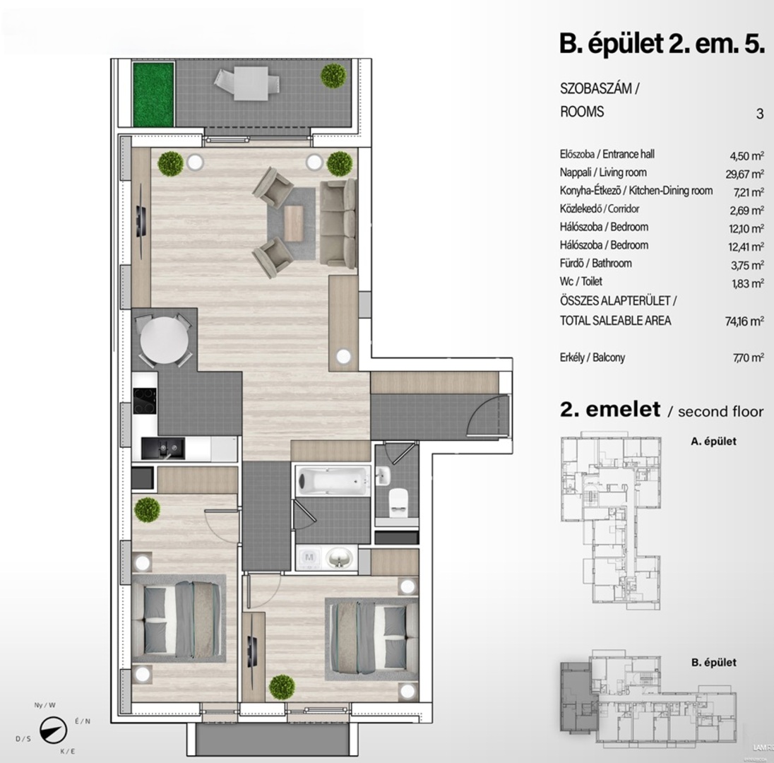34–132 m² közötti lakások, garzontól a 4 szobásig