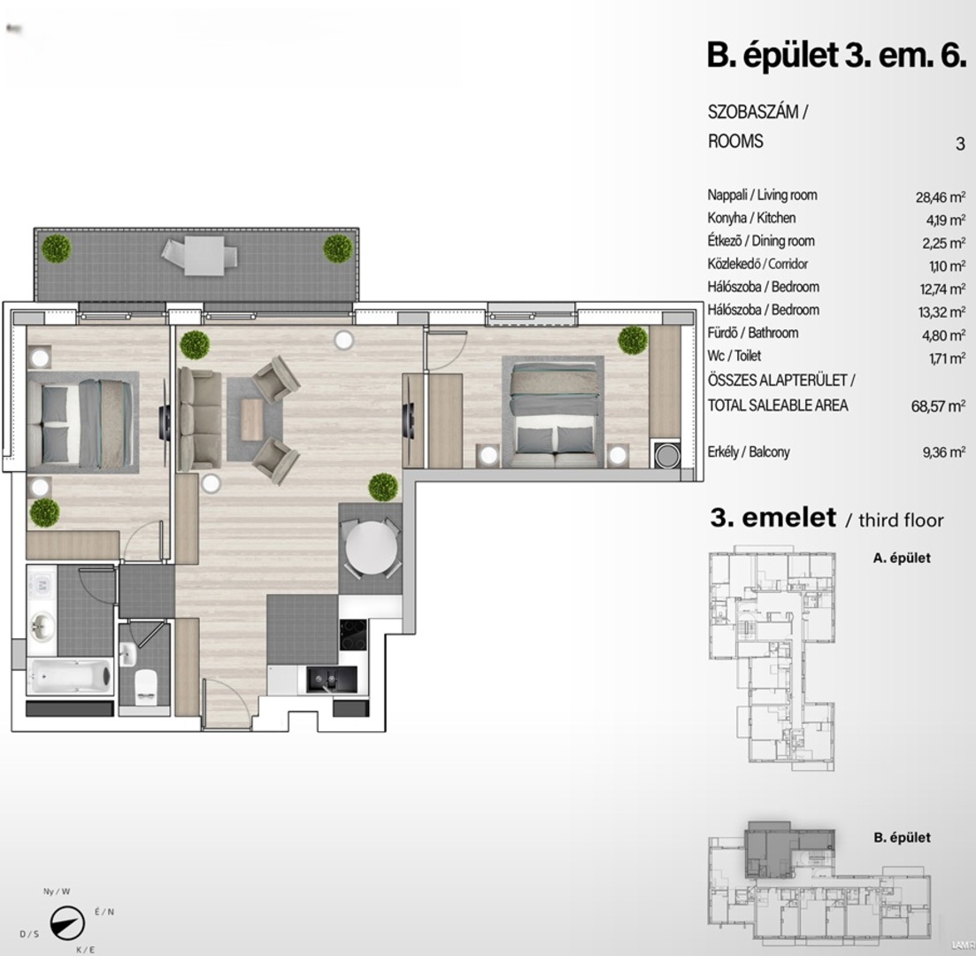 34–132 m² közötti lakások, garzontól a 4 szobásig