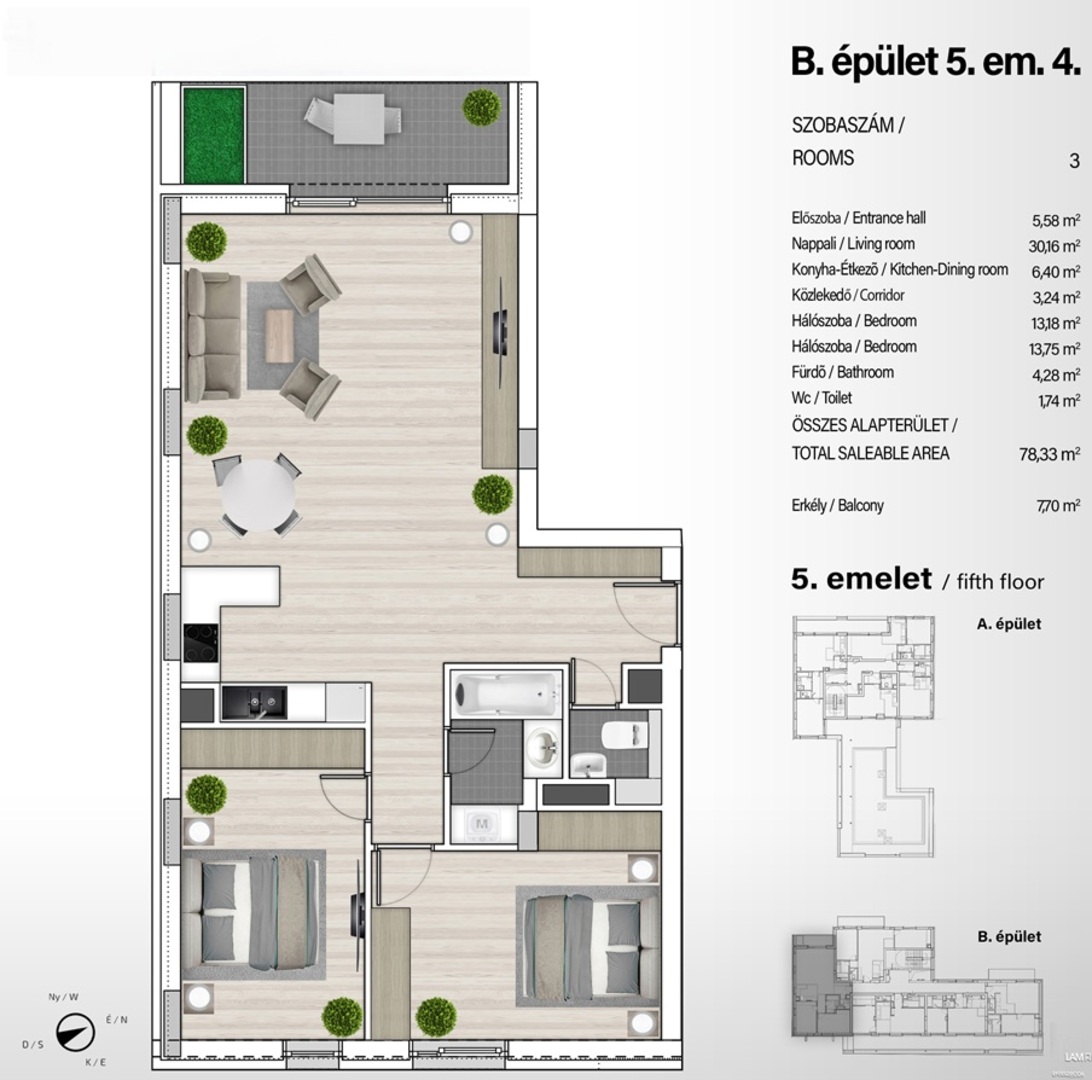 34–132 m² közötti lakások, garzontól a 4 szobásig